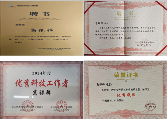 无论是在课堂教学、科研攻关,还是在服务产业与平台建设中,高银祥始终以责任与担当履行教师与科技工作者的使命。他常说:“科研不仅是论文和数据,更要为产业发展解难题,为社会进步作贡献。”正是凭借这种执着与担当,他赢得了政府、企业和广大师生的高度认可与尊敬。